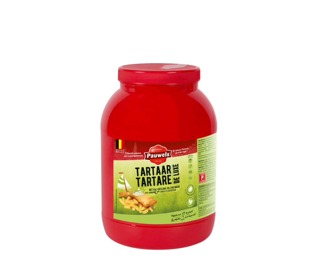Tartare avec des frites, du poisson pané, des scampis, … La sauce tartare fait partie intégrante de nos habitudes culinaires. Chez Pauwels, nous mettons les petits plats dans les grands pour nos clients, car outre sa texture délicieusement crémeuse et son goût frais, la sauce contient également du jaune d’œuf issues de poule élevées en plein air, du persil et de la ciboulette ciselés et des oignons croquants.