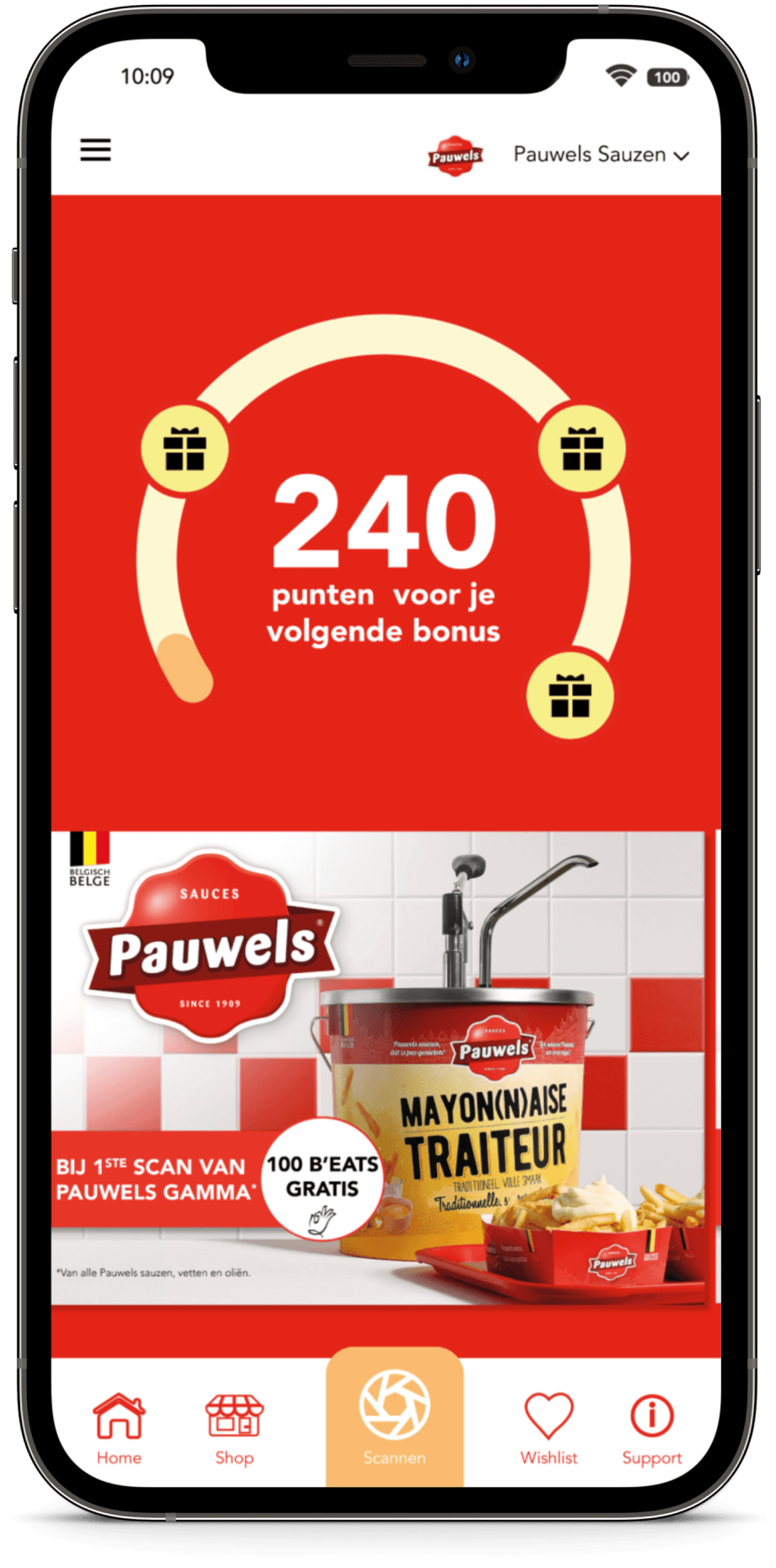Hoe meer je scant, hoe meer B’eats je spaart. En hoe meer je spaart, hoe meer je wint! In de MyB'eats app kan je deze gespaarde B'eats omruilen in privé geschenken, gratis producten van Pauwels, allerlei promotiemateriaal en nog veel meer. Bovendien belonen we onze trouwe spaarders regelmatig met extra bonuspunten en promoties.