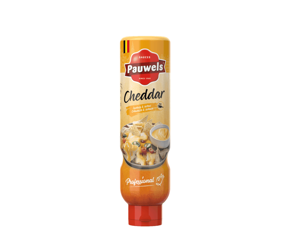 Deze smeuïge saus op basis van Cheddar kaas valt niet voor niets onder de klassiekers der sauzen. De pittig smakende kaas zorgt voor de ultieme smaakbeleving en laat u voor even wegdromen naar andere sferen. Deze smaakmaker kan zowel koud als warm geserveerd worden en is haast onmisbaar bij uw portie nacho’s. Ook op uw hamburger en als topping op loaded fries komt deze smeuïge dipsaus tot zijn recht. Voor de echte kaasliefhebbers is onze nieuwste Cheddar dan ook een must-have! Deze (dip)saus is verkrijgbaar in een handige verpakking van 1L.